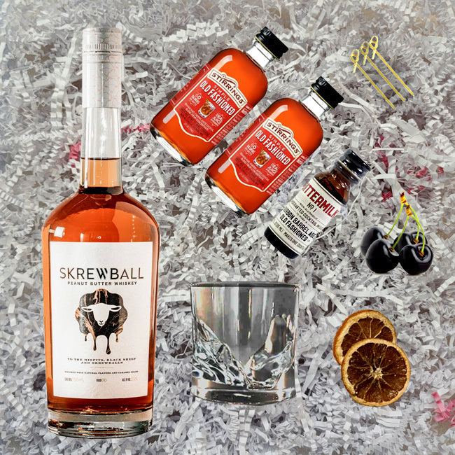 Make your next occasion truly special with this beautifully presented gift pack featuring Skrewball Peanut Butter. Each gourmet gift pack is handmade to order and elegantly wrapped on top. A gourmet gift pack is an easy way to send an impressive gift featuring their favorite bottle of whiskey. Our gift pack make the perfect gift for any birthday, anniversary, holiday or sympathy gift.Â